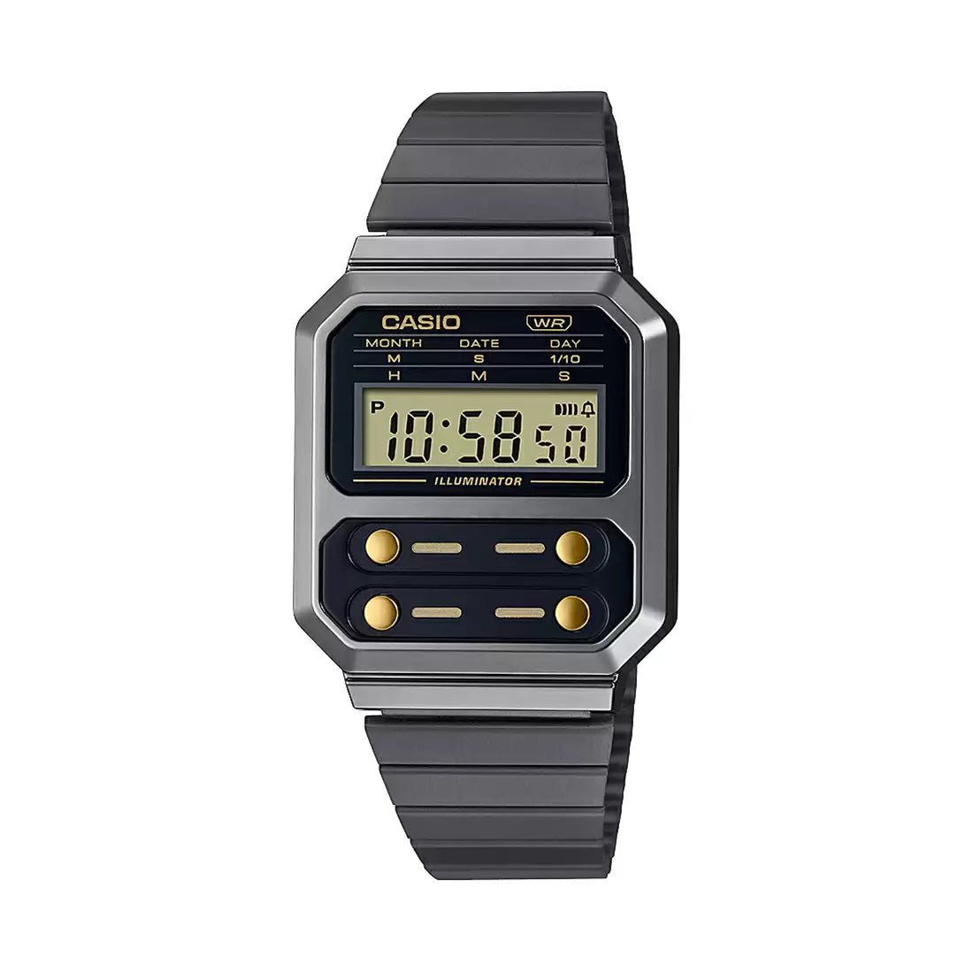 homage to the F-100, the first Casio watch designed with a resin case, the A-100 line commemorates the iconic