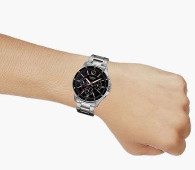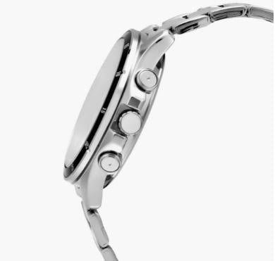 Key Features   Mineral Glass 50-meter water resistance Case / bezel: Ion plated Stainless Steel Band One-touch 3-fold Clasp     Features & Specifications   Water Resistance 50M Weight 124g Function Display Analog Band Material Stainless Steel Glass Material Mineral Case Material Stainless Steel Case Size 47X43.5X10.4mm
