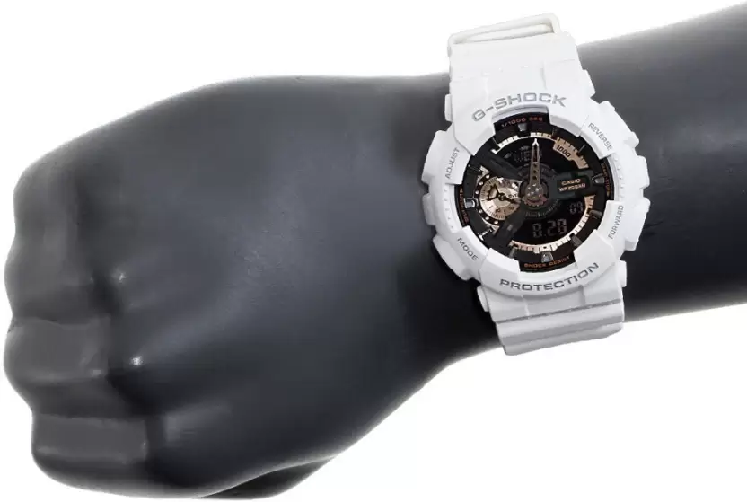 Rose gold accents on this watch’s black dial and its white bezel is just the kind of drama a statement timepiece needs. The watch shows time in both analog and digital formats. The dial is protected by mineral glass, which prevents the watch from scratches.