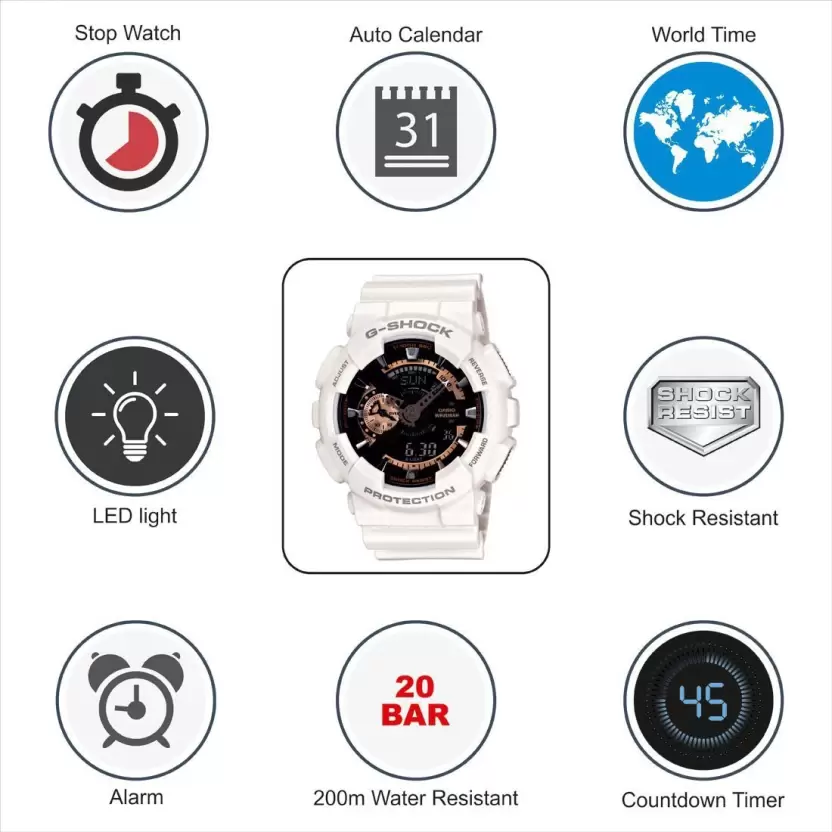 Keep tabs on what time of the day the rest of the world is in, thanks to this G-Shock watch’s world time feature. This watch shows the time in 29 time zones (48 cities + coordinated universal time).