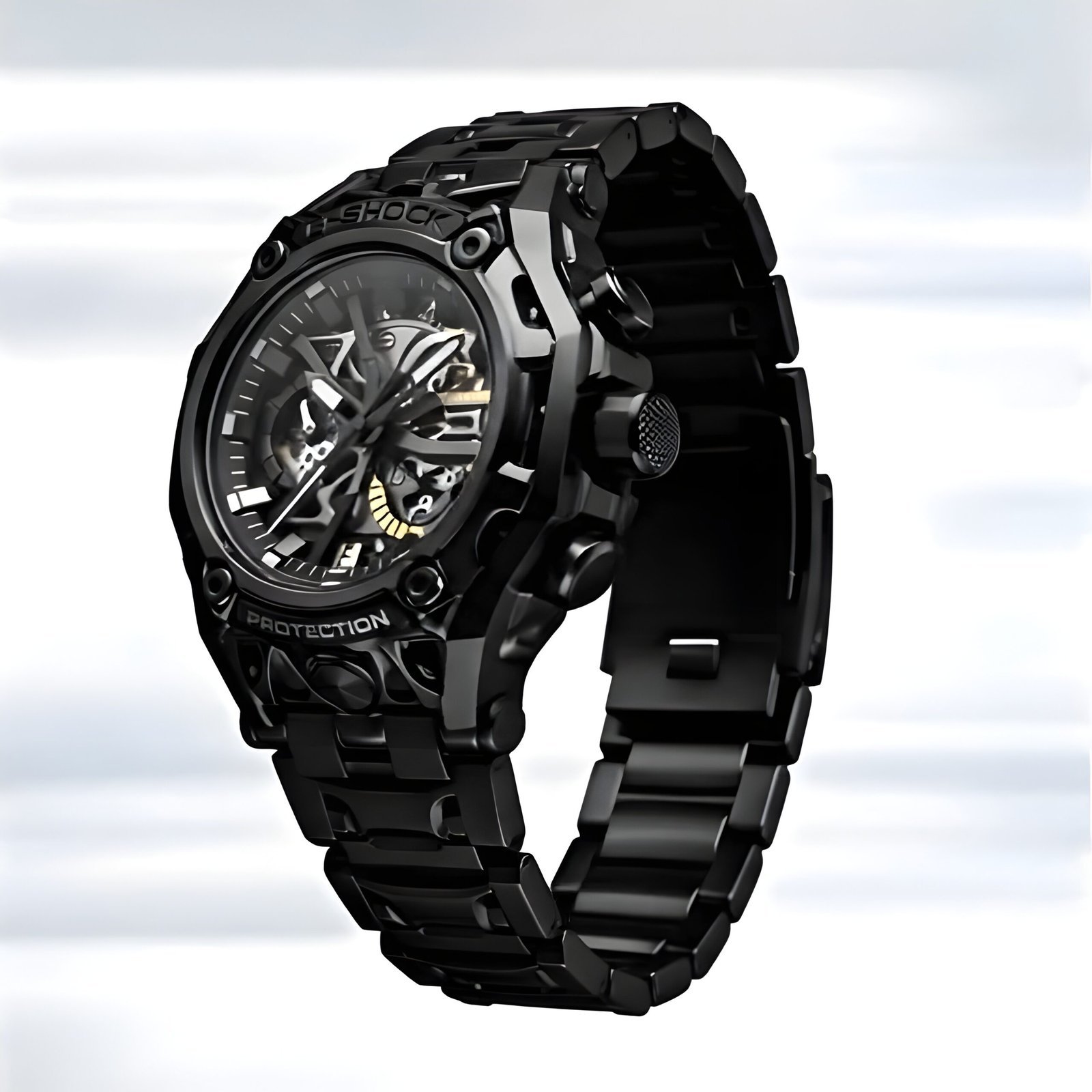 ORIGINAL COLOURS IN A UNIQUE STRENGTH METAL TWISTED TOUGHNESS AND SOPHISTICATION IN A NEW FORM. Introducing a special model to commemorate 20 years of the MT-G, the Metal Twisted G-SHOCK. In addition to a rainbow IP on the bezel meant to evoke a lunar rainbow, this model also features a blue IP on the lug and the band pieces, as well as a gold colouration on the crown, front screws, and other components.This radio-controlled, solar-powered model merges the tough feel of metal with original colours, and also includes shock resistance and Bluetooth® functionality.